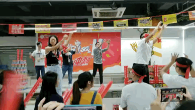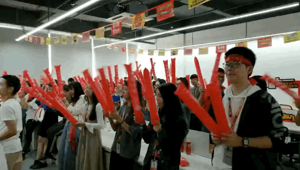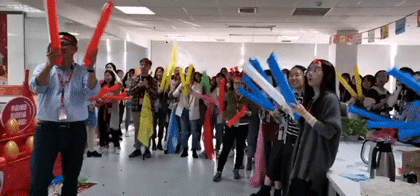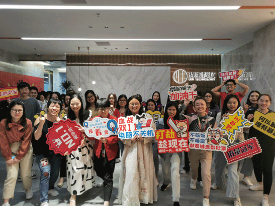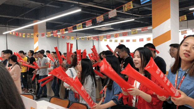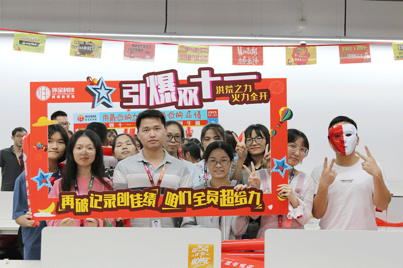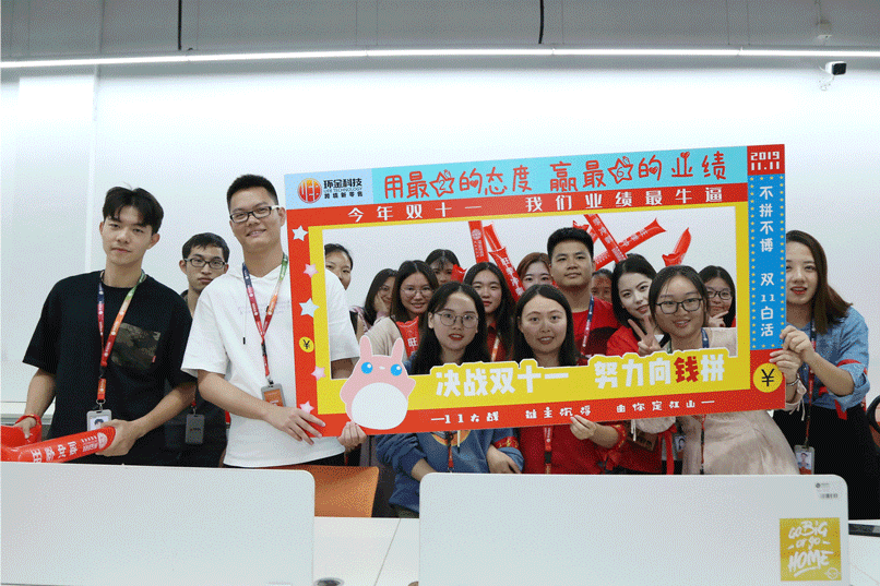 音乐响起 让我们左边跟着“大麦”先生画条龙 右边画一道彩虹 双十一之前要搞事,当然是因为我们要 战双11,冲旺季 搞!大!事! 管理层轮番上阵,为大家加油打气 Penny, Kitty, Dragon和Julie祝大家统统大“麦”,单单爆单~ 香槟&可乐,预祝大家马到功成 漫天的礼花预示着环金人的旺季必爆 旺季大战,谁主沉浮 由我们定江山!