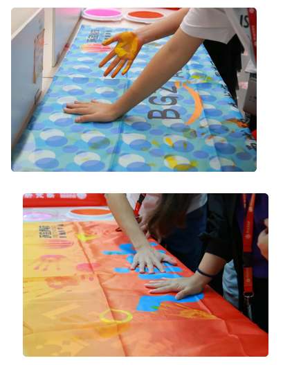 小伙伴们在旗帜上印上手印