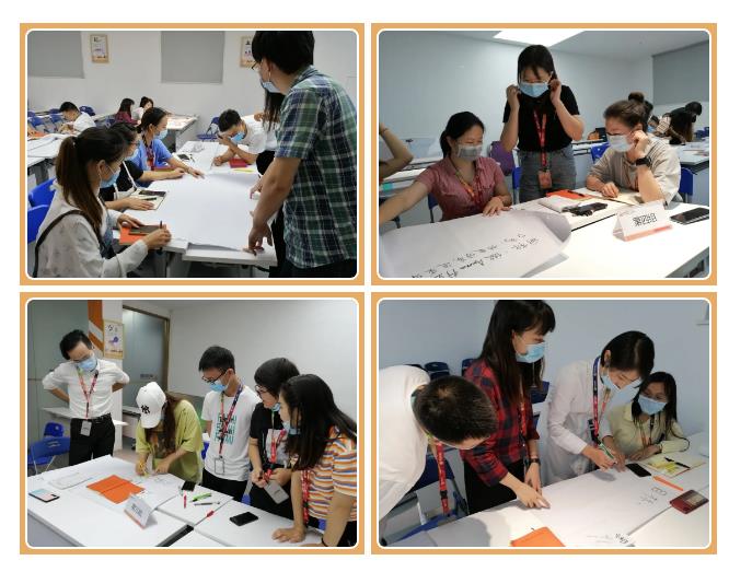 不同部门的小伙伴们在收到指令后,马上分成小组开展起激烈的讨论,大家的灵感也在这源源不断的讨论交流中迸发出智慧的火花。