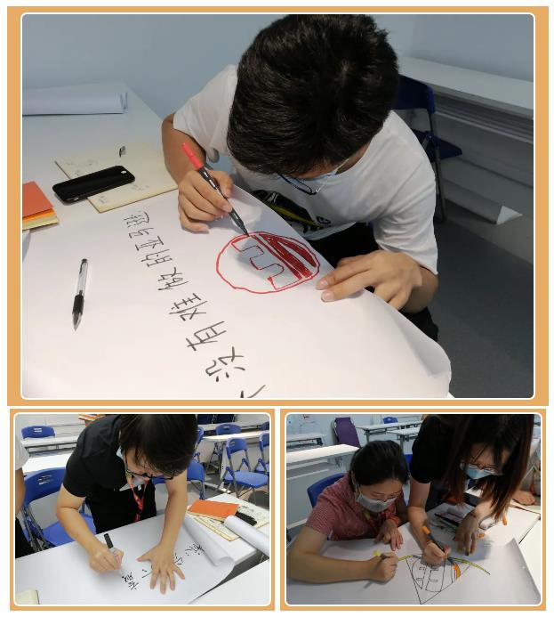 经历了一番灵感的沉淀之后,各组的小伙伴们纷纷完成了自己对于俱乐部的构思,热情洋溢的在台上展示起刚刚讨论的成果。