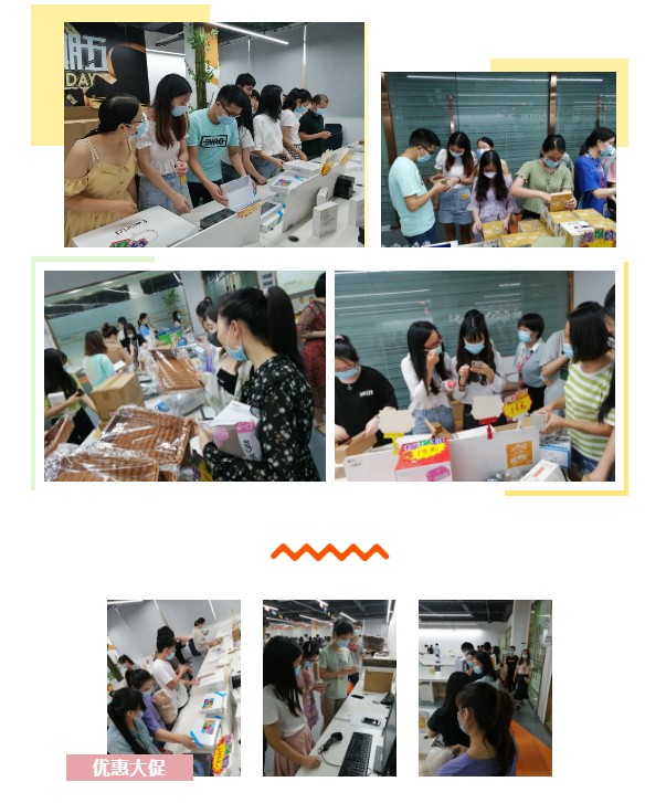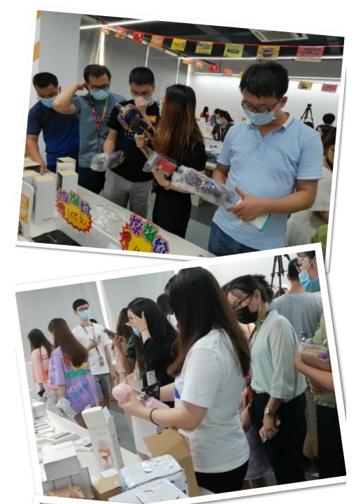 环金嗨淘馆正式开馆后,公司的小伙伴们都掐着点赶来选购自己心仪的商品。