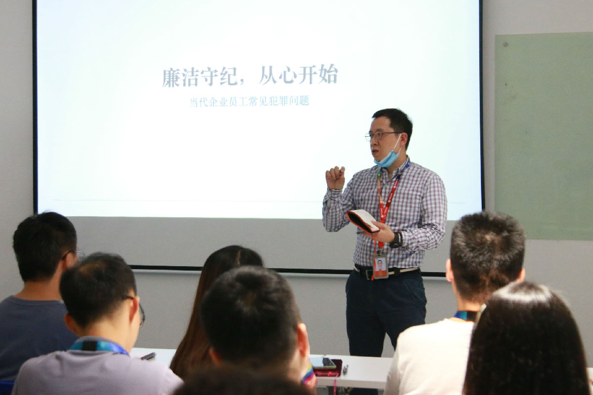 讲座中,刘老师围绕着几大企业员工常见的犯罪问题,紧扣廉洁守纪主题,结合我司行业特点,引用具体案例为员工做了相关问题的详尽科普。 刘老师强调,“保持廉洁,远离犯罪”需要从心出发,明确自身的底线与原则,扫除认知盲区,提升自律意识。坚守品格,建立自我行为准则。 围绕着本次讲座主题,部门总监陈总与鞠总进行了总结发言:“诚信”不仅是环金企业价值观中最重要的一环,更是企业的立身之本。员工与供应商建立良好关系、赢得客户的信任与支持,离不开诚信与廉洁。 树立廉洁之风,忠于企业,服务于客户。谨记环金红线十条,以红线为镜,以道德为尺。做明明白白环金人,用诚信树新风:律己正身,在岗有为,达成环金新高度,实现环金新跨越!
